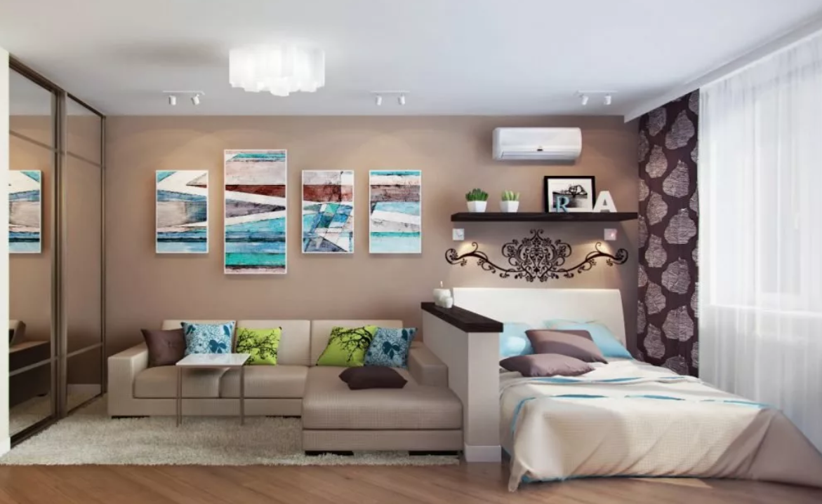 Компактные квартиры – тенденция современности, поэтому декораторы и производители мебели предлагают готовые формы организации пространства. Немного фантазии – и малоформатная комната преобразится в уютную гостиную со спальней без особых сложностей.