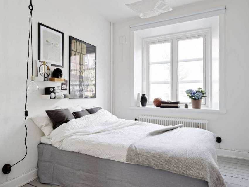 - В отличие от прямоугольной, в квадратной комнате на разных стенах следует развешивать не более одной картинки или фото. При этом спальня 3 на 3 примет симметричный вид.