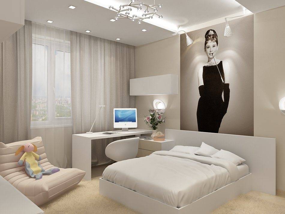 Чтобы правильно подобрать и расставить мебель, необходимо определиться для чего, помимо сна, будет использоваться комната. В спальне можно разместить рабочую зону, место для макияжа, гардеробную комнату или шкаф. Плазма и стереосистема – неотъемлемая часть спальни киноманов. Разграничить зоны можно с помощью использования разных обоев.
