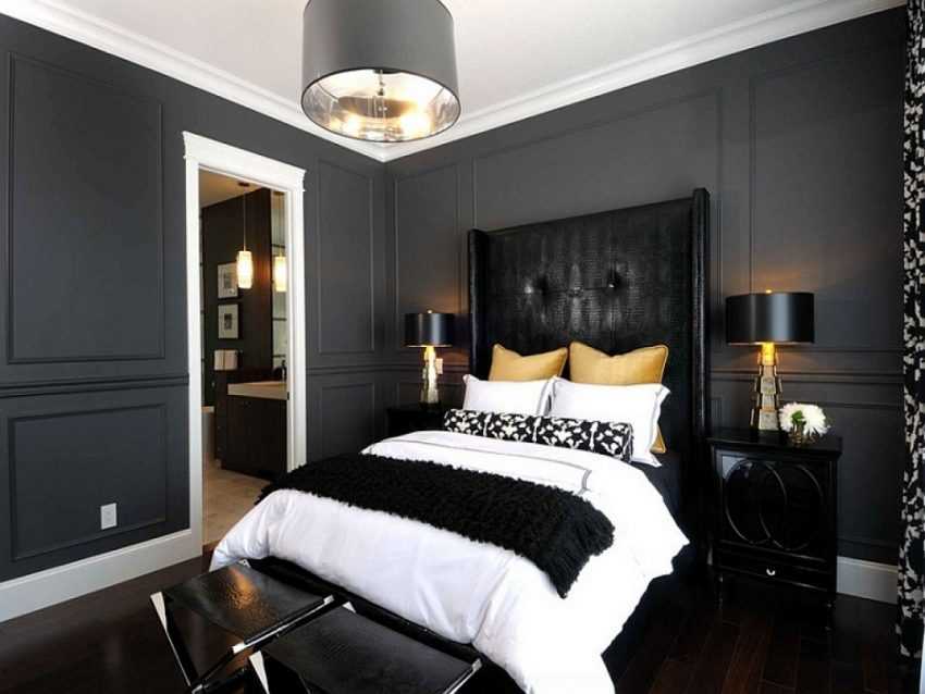 Постельное белье лучше подбирать в светлых оттенках. Это же правила касается и покрывала, и декоративных подушек. Такое решение поможет проще выделить кровать, как основной элемент спального помещения, придать ему воздушность и выразительность. При этом не обязательно идеально расправлять всю ткань и изящно раскладывать складки. Небольшой беспорядок придаст темной спальне дополнительное очарование.