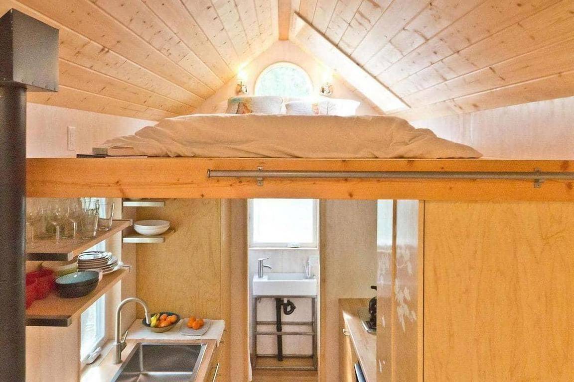 Если площадь маленькая, уютную и необычную спальню можно сделать и на антресоли. Для этого в обычном помещении создается деревянная конструкция, отгораживающая часть пространства у потолка.