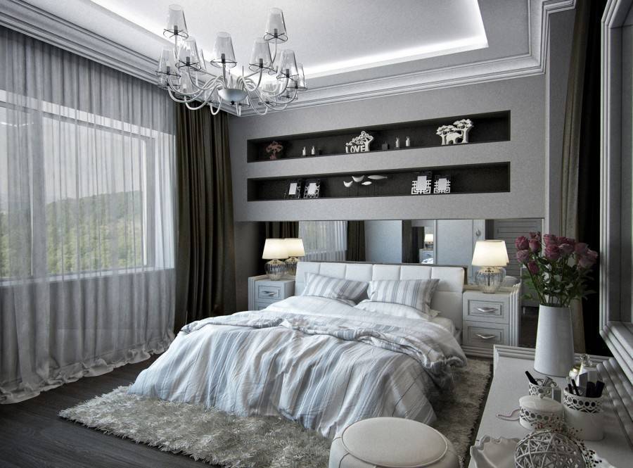 В каждой функциональной зоне спальни должно быть отдельное освещение