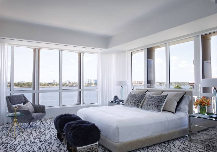 Кстати, серо-белая спальня – одно из излюбленных сочетаний в современной классике. Этот стиль характеризуют крупные, удобные предметы мебели, изголовья со стяжкой, пышные пуфы и кресла, симметрия в расположении предметов и, конечно, изысканные детали. Сдерживаясь в цветовых сочетаниях, в плане декора можно позволить себе чуточку больше.