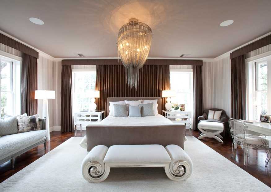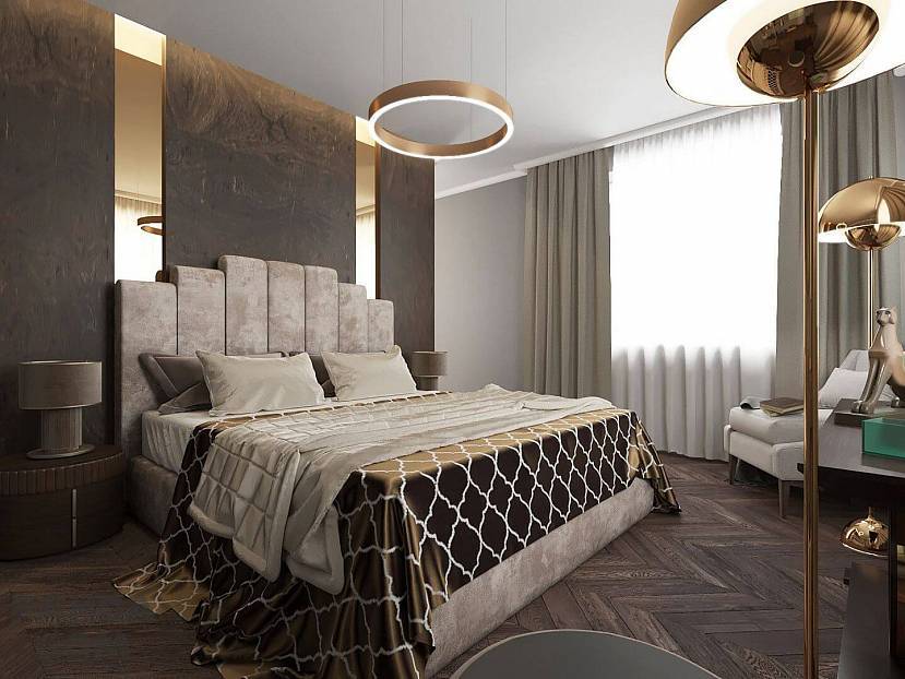 сочетание бежевого и темно-коричневого в спальне в стиле арт деко