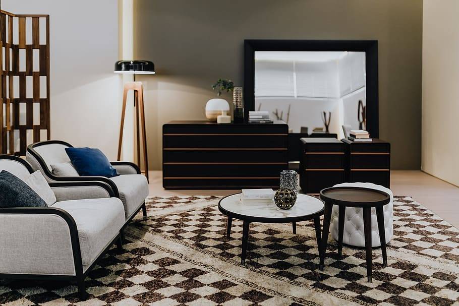 — это сочетание изысканности и строгости. Прямые ломанные линии, угловатость, чёткие формы, насыщенная, но нейтральная цветовая палитра, позволяющая сделать акцент на аксессуарах и декоративных элементах. В отделке и декоре применяются металлические оттенки, сильные контрасты.