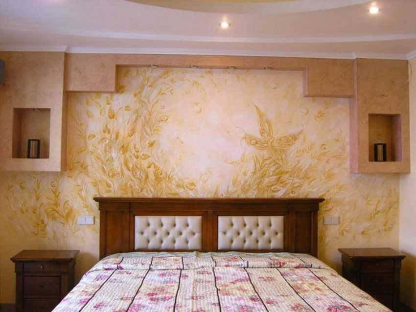 Работать с ней будет сложнее, но результат того стоит: вы получите изысканное покрытие, имитирующее срез мрамора – отличный вариант оформления спальни в классическом стиле.