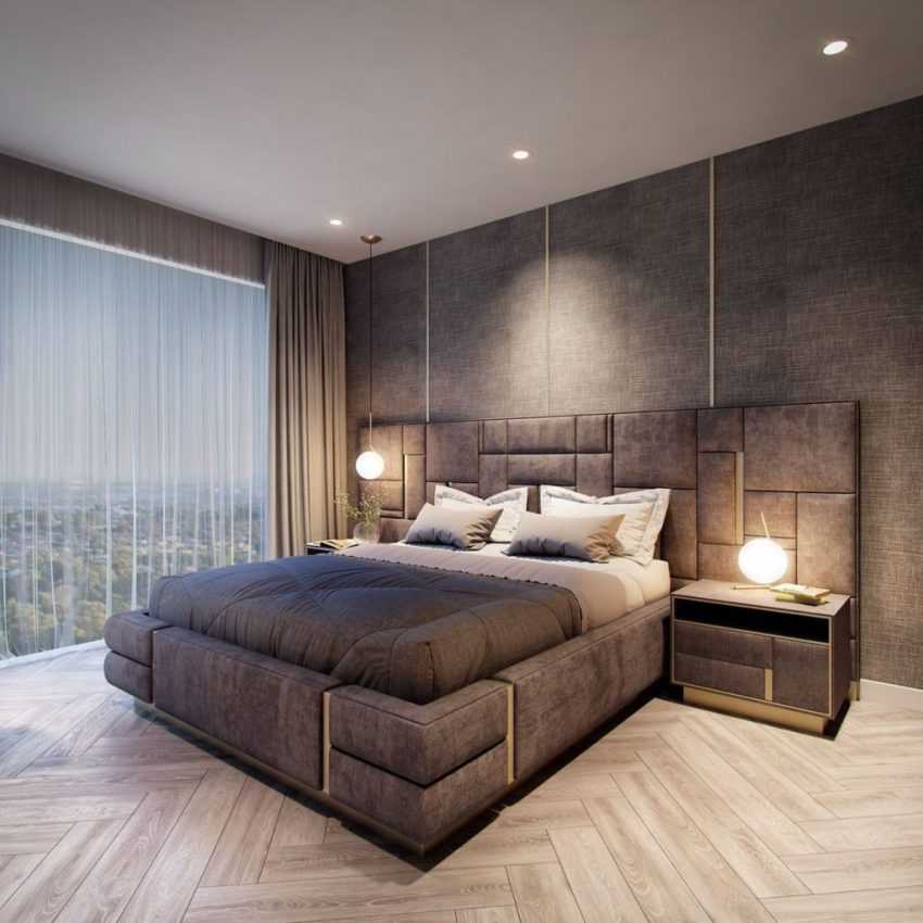 Коричневый в современной спальне – это, в первую очередь, дерево. Оно используется везде: в мебели, на полу, в декоре и даже в виде стеновых панелей для акцентной стены за изголовьем. Дизайнеры предпочитают промежуточные оттенки: не слишком светлые, вроде сосны, но и не слишком темные, вроде черного ореха.
