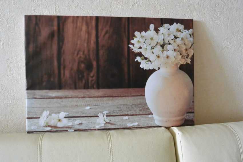 В качестве декора можно использовать картины в однотонных рамках, стеклянные или керамические вазы оригинальной формы и растения (живые или сухоцветы).