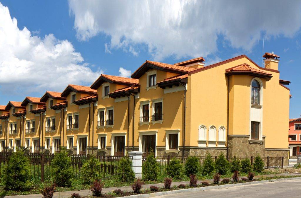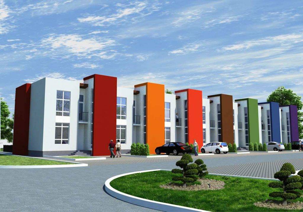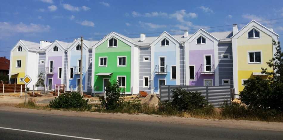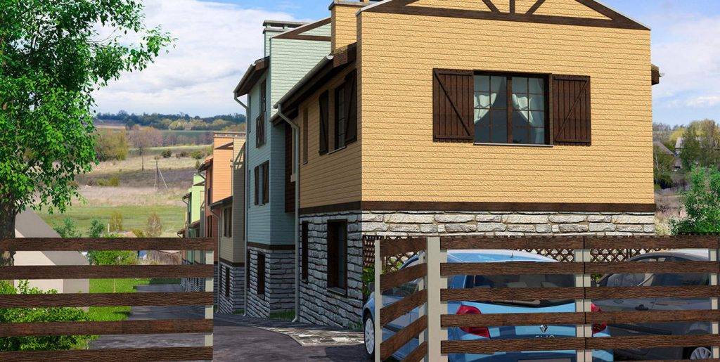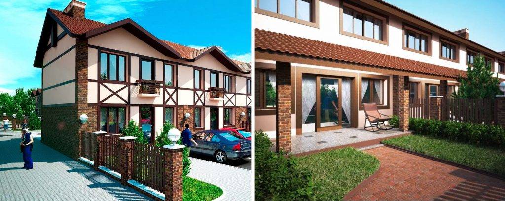 Однако, типичный «городской дом» — это единая постройка, условно разделённая на одинаковые блоки. Каждая секция имеет отдельный вход и небольшой участок земли.