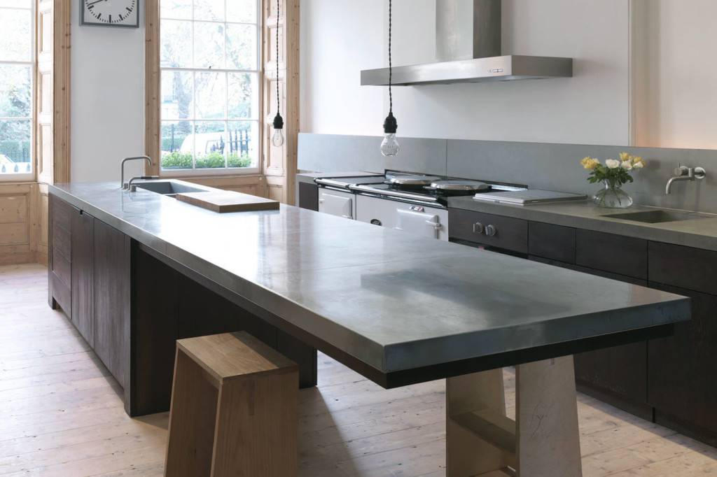 Дизайн кухни в таунхаусе может представлять разделенное пространство на зоны. При этом зонирование можно выполнить при помощи различной мебели, отделочных материалов и света. Например, над рабочей зоной разместить мощные светильники с лампами, а обеденную зону осветить аккуратными лампами, дающими приглушенный свет. Этот прием позволяет хозяйке спокойно заниматься приготовлением пищи в комфортабельных условиях, а членам семьи и гостям – собираться за столом в домашней, уютной атмосфере.