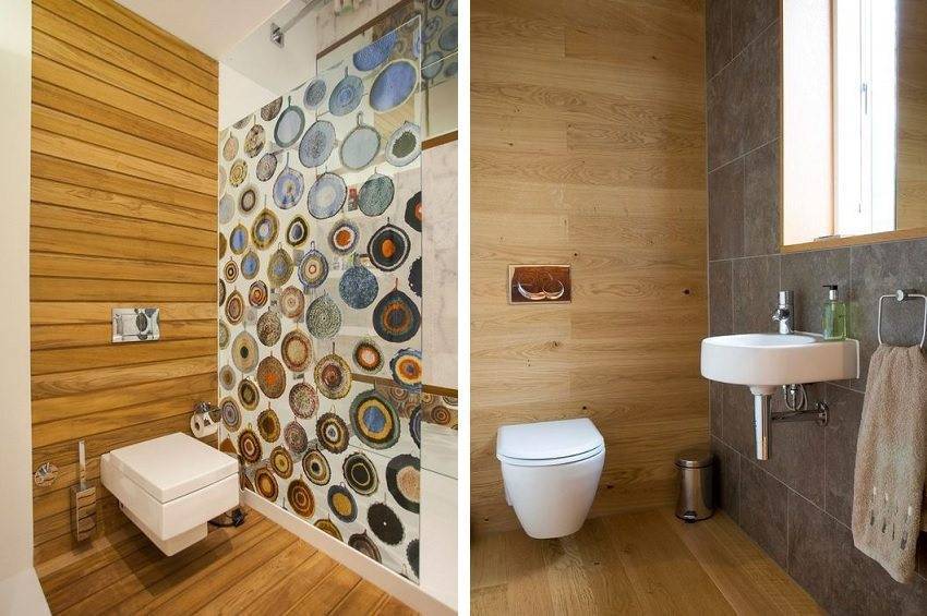 Отделка туалета натуральным деревом