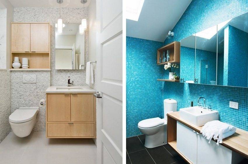 В качестве отделки маленького туалета сегодня часто выступают: