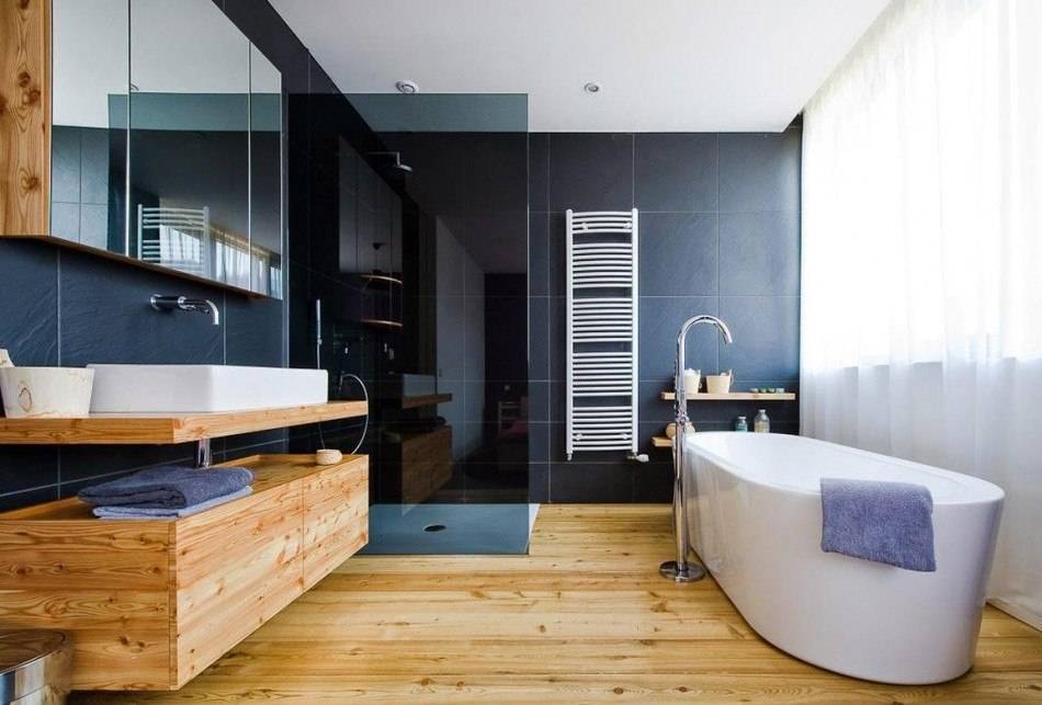 В ванной комнате свой микроклимат. Высокая влажность и постоянные перепады температур — нормальное явление для этого помещения. Выбранный материал для отделки должен защищать стены и другие поверхности от воздействия этой среды, и одновременно создавать уютную атмосферу, ведь хозяева проводят значительное количество времени именно в этом помещении. Чтобы избежать образование плесени на стенах, обязательно проводится гидроизоляция поверхностей.