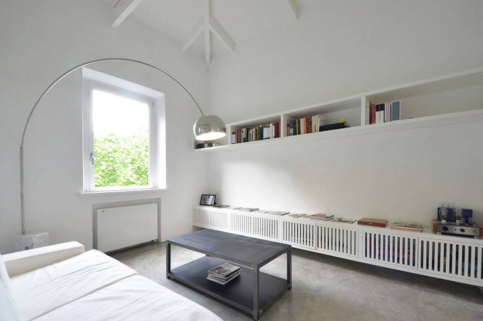 Еще одна особенность — полы в помещении не подлежат отделке, голый бетон самый приемлемый вариант. Но для жилого помещения он конечно же не подойдет. Поэтому в качестве покрытия используют паркет или половые доски. Дерево обязательно покрывают лаком. Стены традиционно остаются в своем первоначальном виде. Кирпич, бетонированная поверхность, плитка – все это не играет роли. Альтернативой могут стать обои с имитацией такого покрытия. Потолок традиционно белый. Лучшие материалы для потолочного покрытия – необработанный бетон, металл, дерево.