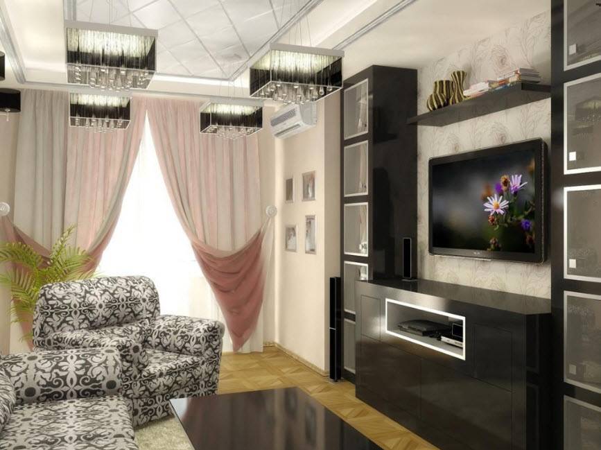 Если помещение гостиной не только мало по своей площади, но также требует совмещения нескольких функционально отличающихся зон, то этот фактор должен быть учтен с самого начала проектирования. Зонирование, если оно необходимо, выполняется с помощью таких приемов: