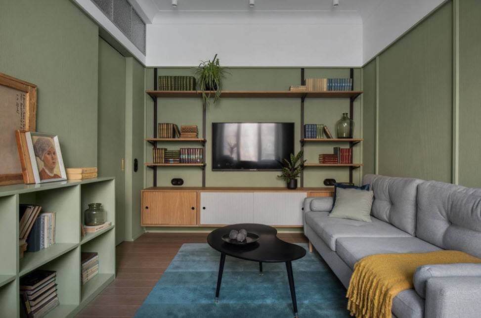 Цвет помогает визуально изменять пространство, например, темный пол, светлые стены и белый потолок сделают комнату больше, а светлая передняя стена и темные боковые добавят пространству глубины. Лучше всего использовать пастельные тона, например, бежевый, серо-голубой, фисташковый и оливковый тона, которые разбавляют теплыми оттенками. Не менее привлекательный вариант – это оформление гостиной в золотистых, песочных, коричнево-кофейных или молочных цветах. В качестве акцентов можно использовать декор оливкового, красного или оранжевого цвета. Наполнить пространство светом позволит качественная система освещения и зеркала.