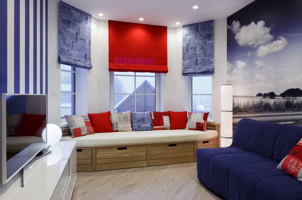 Для солнечных окон можно обратить внимание на холодную цветовую гамму, «гасящую» большое количество солнечных лучей.