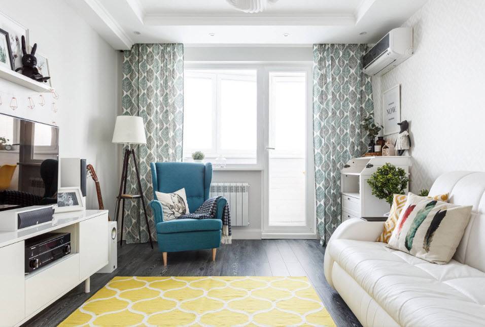 Яркое решение для маленькой гостинойИсточник dizainexpert.ru