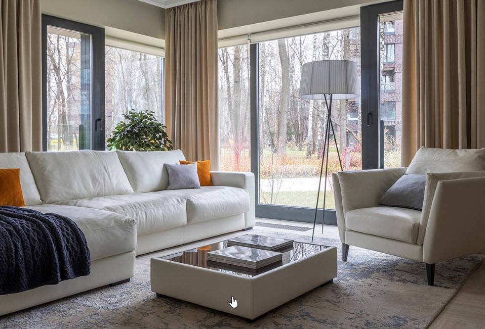 Выбери «приземистый» модульный диван, журнальный столик, небольшую систему хранения с глянцевыми фасадами, а окна оформи короткими рулонными полотнами. Теперь твоя гостиная станет по-настоящему стильной, просторной и светлой!