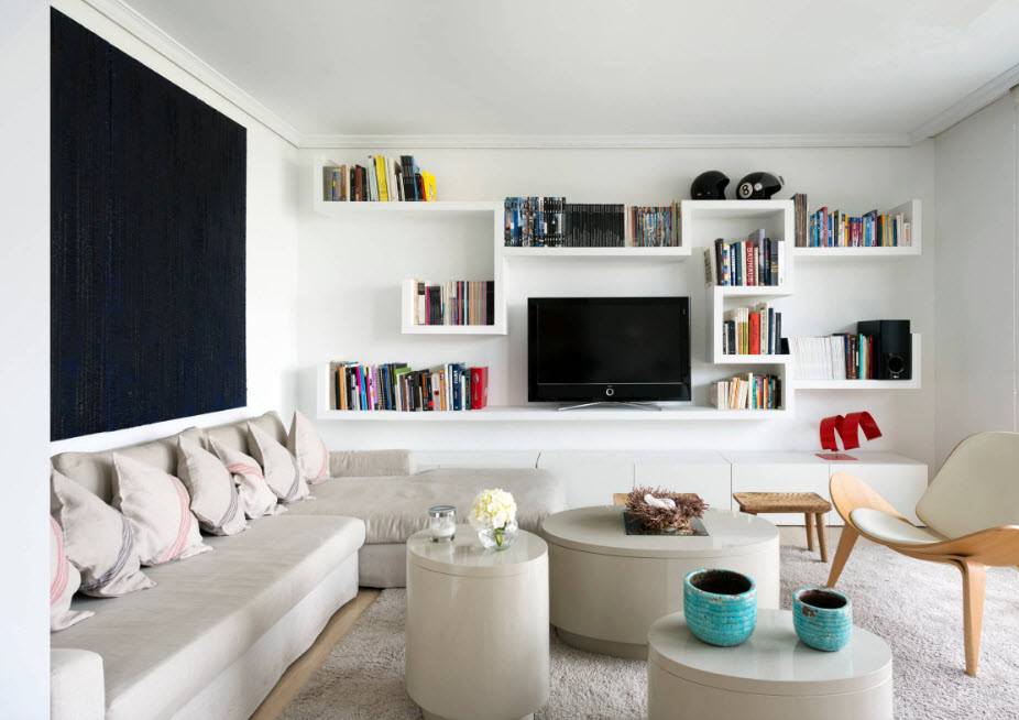 Светлый оттенок, доминирующий в гостиной, может выглядеть скучно и неинтересно. Разбавить такой «пресный» интерьер необходимо необычным декором, применением оригинальных решений. Несколько цветов в оформлении комнаты помогут создать динамичную атмосферу и даже улучшать самочувствие.