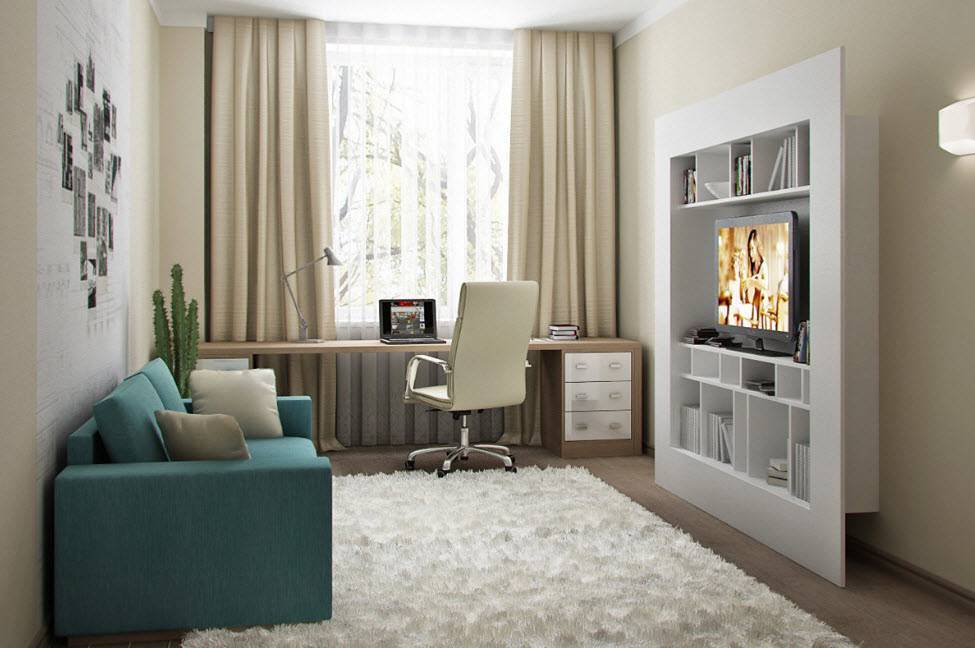 Интересный вариант оформления узкой комнатыИсточник topdizajn.ru/