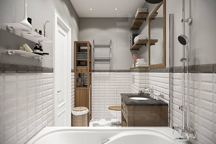 Однако, когда вы хотите немного согреть декор и обратить внимание на ванну, стоит украсить сантехнику эффектной мозаикой или 3D-плиткой. Также хорошо повторить этот мотив в пространстве рядом с зеркалом или сверху сантехники, чтобы сделать интерьер сплоченным