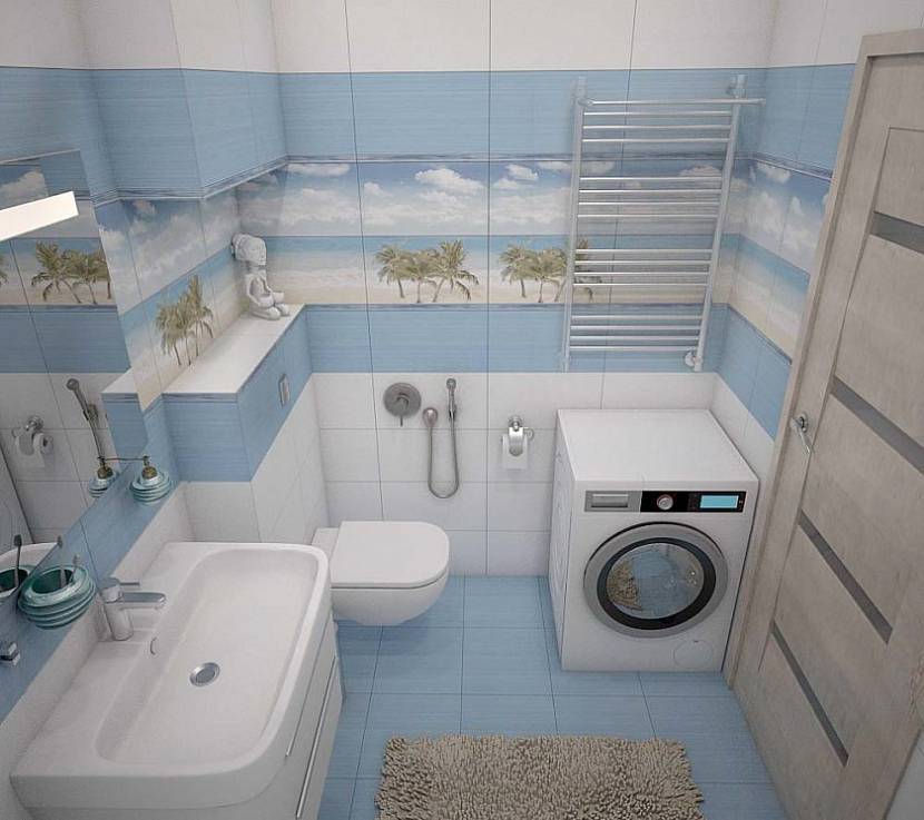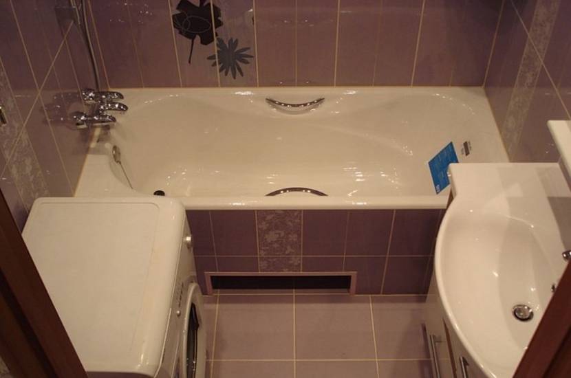 Еще вариант — установка сидячей ванны. В них не получится вытянуться во весь рост, но релакс с сидячем положении — тоже неплохо. В этом случае можно найти место под установку небольшой стиральной машины — под раковиной.