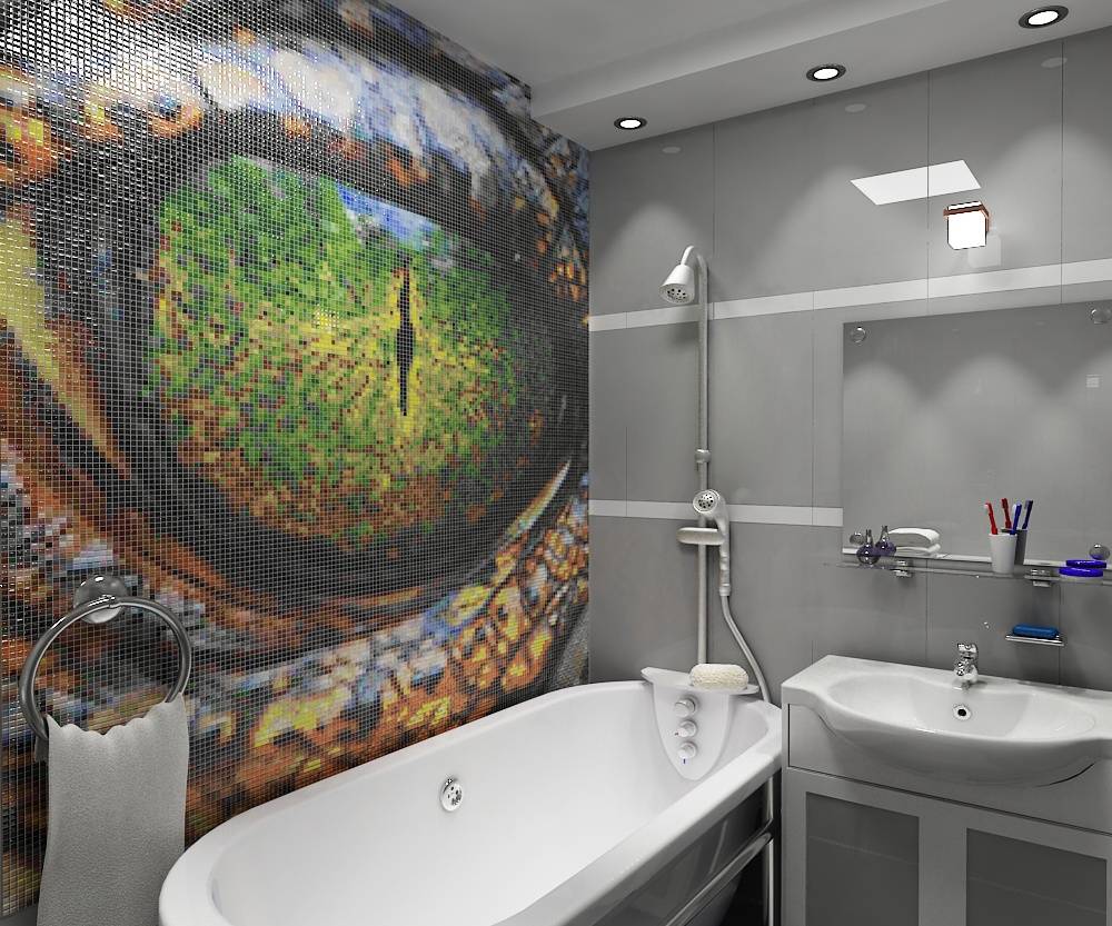 Стены. Облицовка стен светлой кафельной плиткой небольшого размера с простыми геометрическими рельефами подчеркнет чистоту помещения. Яркие плитки, разноцветные панно «сожмут» помещение. Еще одно решение, увеличивающее пространство – можно использовать плитку двух цветов, рисунок, переход плиток рекомендуется делать по диагонали стены.