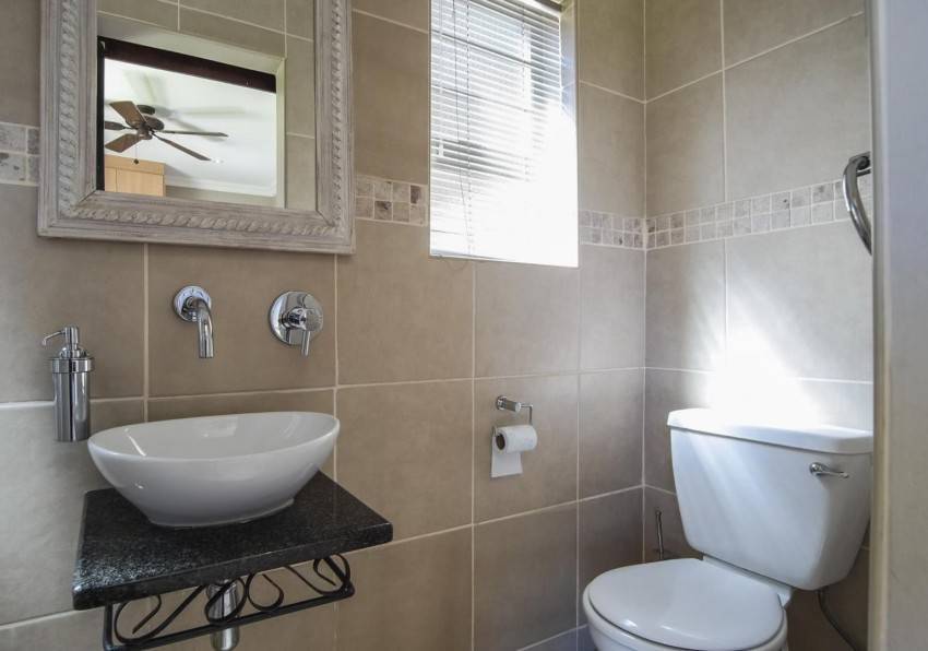 Коричневая отделка, представленная в акцентах, придает ванной оригинальностиИсточник roomester.ru
