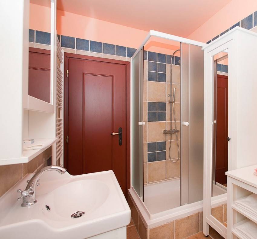 В маленькой ванной комнате лучше поставить душевую кабинку, она занимает меньше места