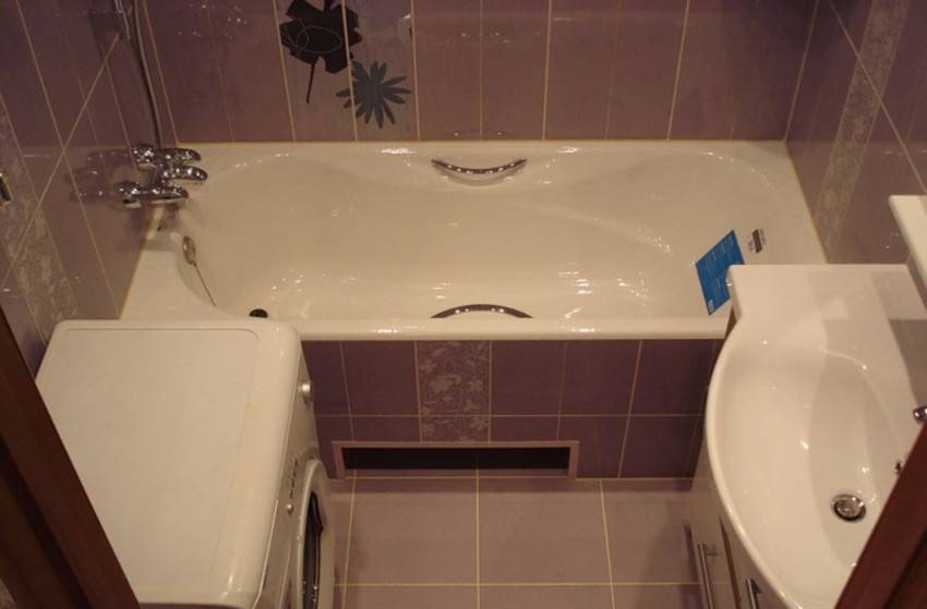 Если наличие отдельной ванны является обязательным условием, в таком случае размещение стиральной машины и раковины желательно предусмотреть в другом месте.
