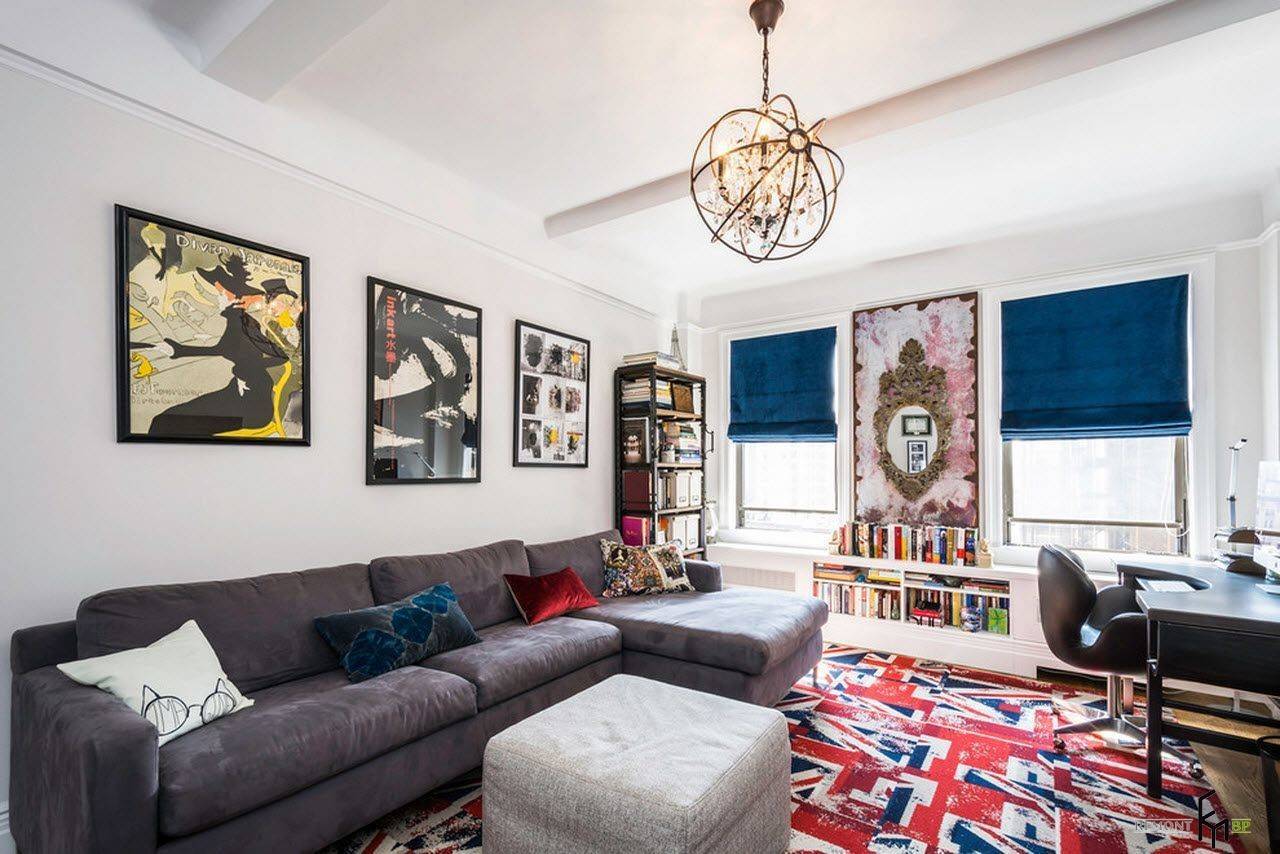 Для завершения и создания единого целого в дизайне интерьера комнаты 16 кв. м. в этом стиле, используют колоритные ковры, имеющие восточный и растительный мотив.