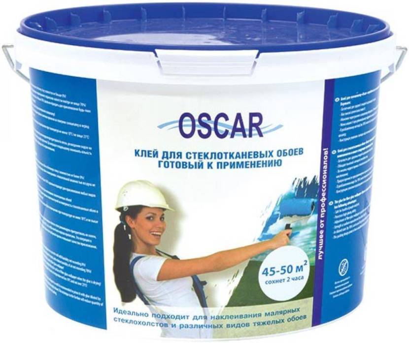 Обычно компании-производители предлагают свой собственный клей, подходящий для их материала. Чаще всего применяется клей Оскар для стеклообоев с цветным пигментом, который показывает равномерность промазывания. Также существует универсальный морозостойкий клей для стеклообоев: Pufas, Security GK 10, Kleo Ultra и другие. Этот состав размешивают обычной водой до определенной консистенции. Но не будем вникать во все подробности подготовки клея, инструкция есть на упаковке.
