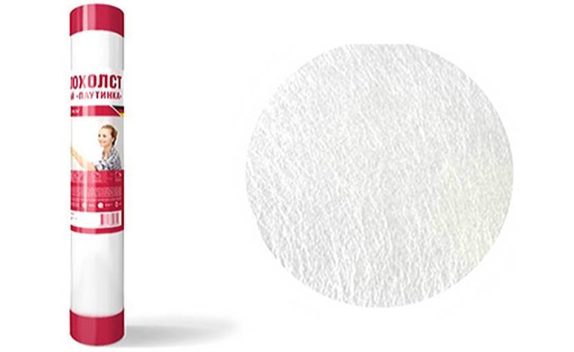 Стеклохолст паутинку под покраску производят из кварцевого песка, плотность варьируется в диапазоне 25 – 50 г/м². Различают три вида волокна. Первый используют для наклеивания на потолок. Он имеет плотность 25 г/м², тонкий лёгкий материал хорошо ложится на поверхность, требует для покрытия малое количество краски. Основание не должно иметь больших трещин и неровностей.