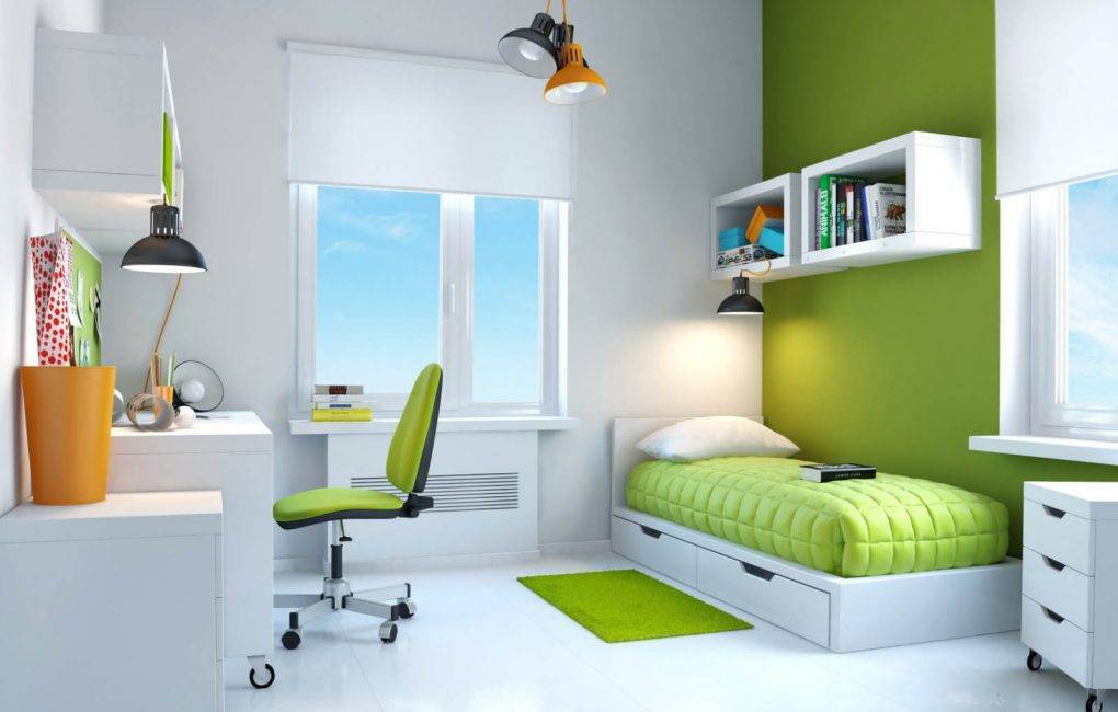 Рабочая зона. Отделить ее от зоны отдыха можно стеллажом или книжной этажеркой. Разместить в ней рекомендуется письменный или компьютерный стол, повесить полки на стену.