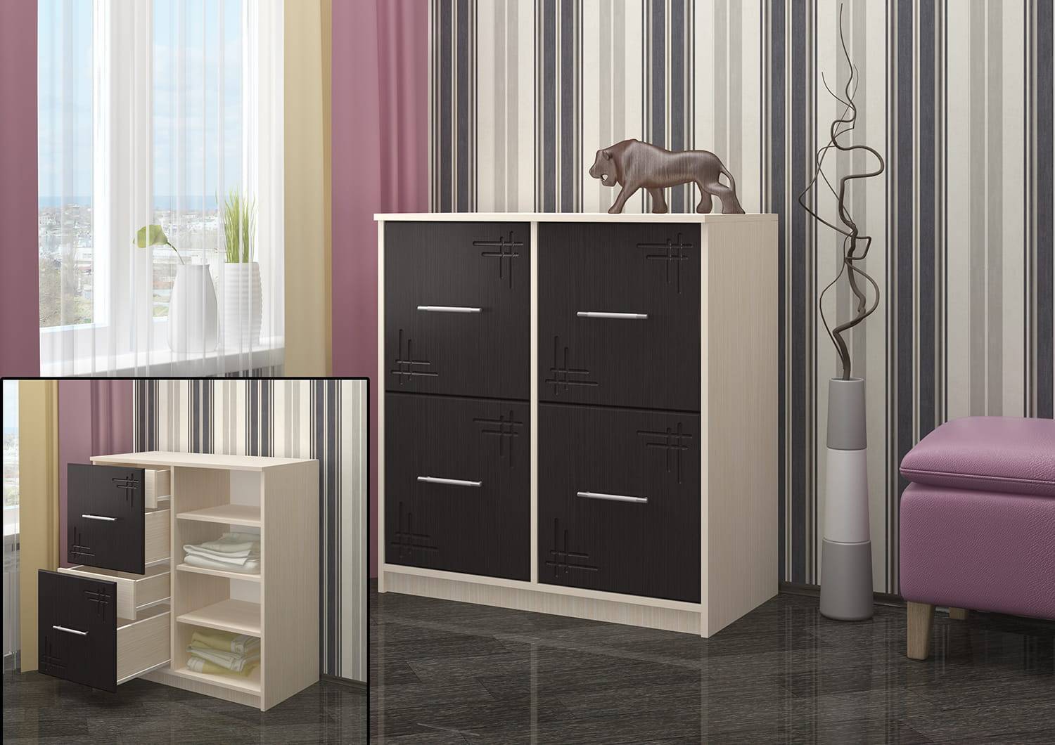 Вертикальный комод, даже в маленькой комнате не займет много места, а оснащенный большим количеством выдвижных ящиков останется функциональным и вместительным. Вертикальный комод не будет визуально перегружен. Может использоваться для хранения нижнего белья, документов или аксессуаров.