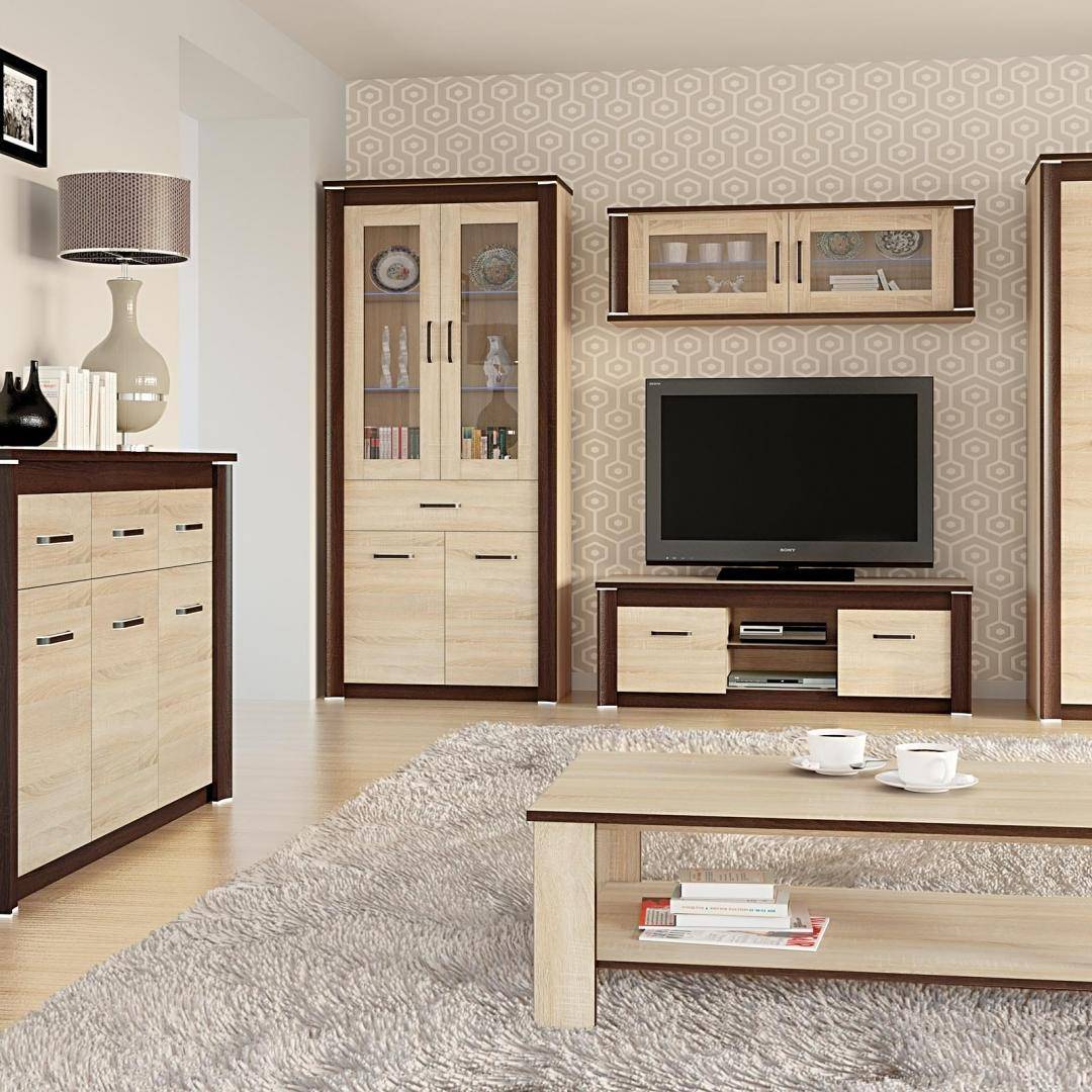 - используются различные варианты декоров, в зависимости от стиля гостиной. Наиболее удачно вписываются в минималистический интерьер. В комплекте может использоваться навесная тумба;