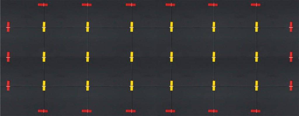 Из-за большего размера данные зажимы (клипсы) можно вставлять в пересечение четырех плиток, что, по сравнению в предыдущей системой, уменьшает их число в четыре раза.