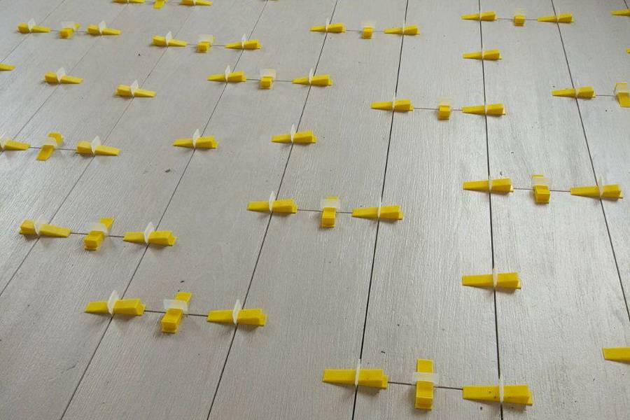 - После крепления системы DLS плитку не трогают, клинья не сдвигают и не меняют их положение.