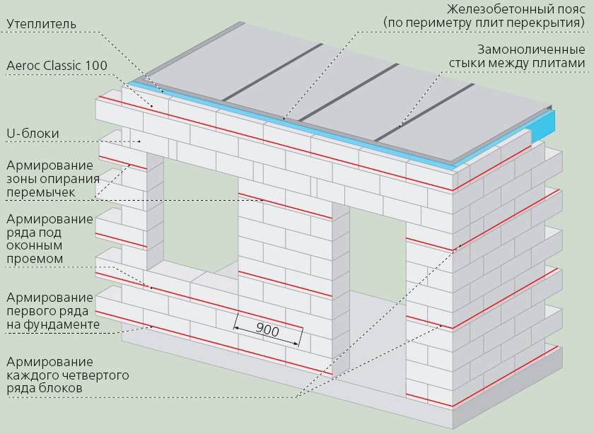 - Кроме того, армировать необходимо ряд под оконным проемом – ширина проема плюс 90 см, и места опирания перемычек над окнами и дверями.