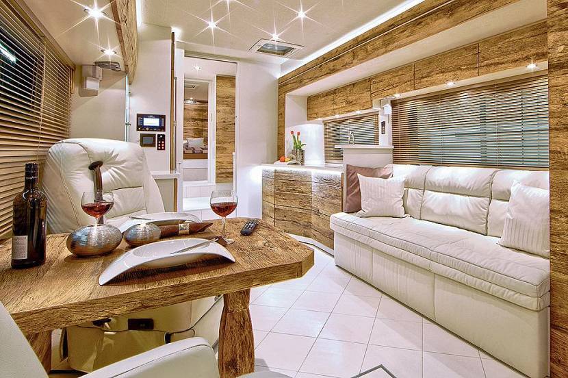 Оснащение фургона внутри в современном дизайнеИсточник reisemobil.ru