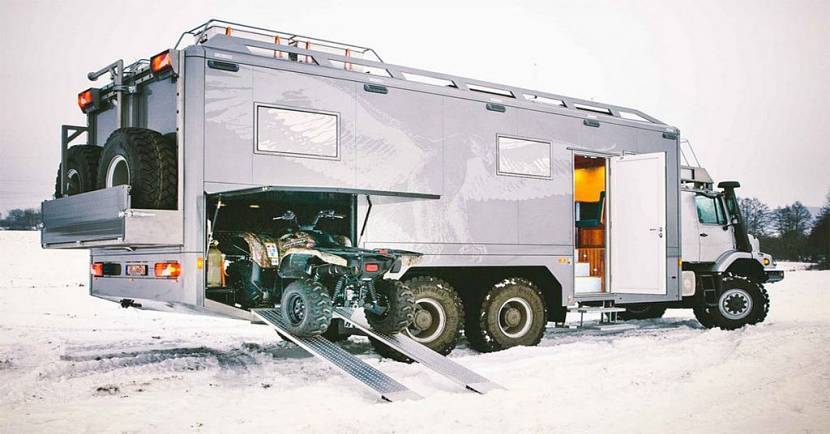 Дом на колесах с гаражом для квадроциклаИсточник luxusbenz.com