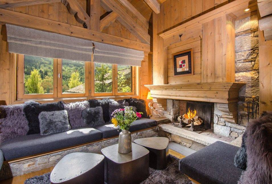 Наличие камина — ещё одна характерная особенность интерьера в стиле шале. Конечно, настоящий огонь в красиво оформленном очаге намного колоритнее, чем искусственные сооружения, но современная промышленность выпускает отличные аналоги, подходящие для современного интерьера. Фальш-, био-, электрокамины по внешнему виду очень похожи на устройства с живым огнём и для городских квартир могут стать отличной заменой каминам с настоящими горящими языками пламени.