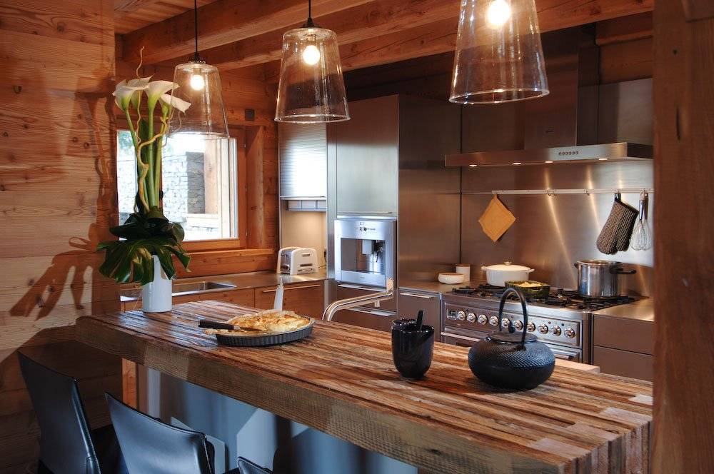 Дизайнеры умело соединили элементы стиля шале и бытовую технику