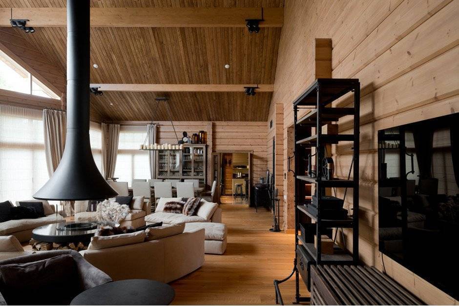 Весь интерьер представляет удачный синтез современности и стилизованных элементов стиля шале