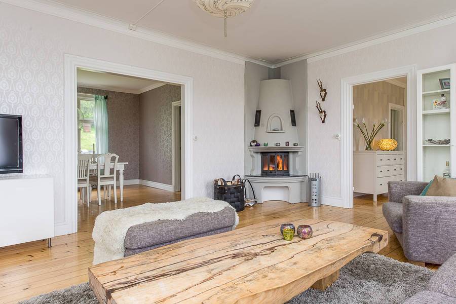Пастухи Швейцарии не принимали гостей так, как это делаем сегодня мы, потому и гостиной в классическом смысле у них не было. Таковой с натяжкой можно считать комнату с камином – последний аксессуар в зале просто обязан быть, потому что в свое время это был и обогрев, собиравший вокруг себя всех жителей холодными горными вечерами, и единственная «картинка» на время, пока за окном ничего не видно.