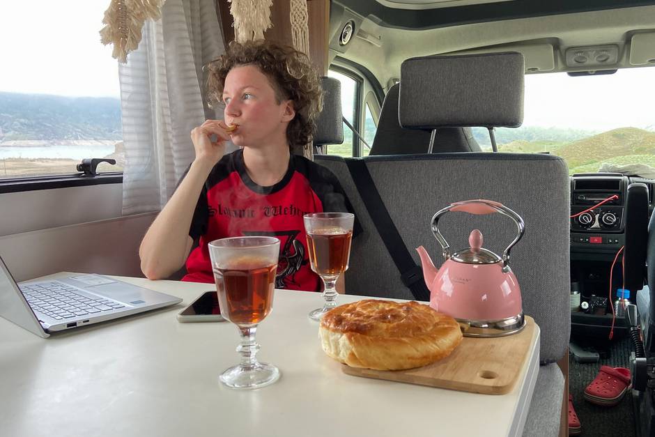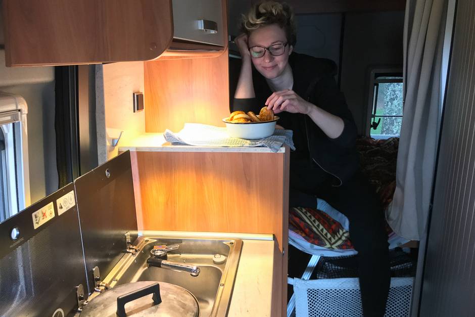 «В нашем фургоне классный большой санузел, шикарная гостиная, где помещаются восемь человек, самодостаточная кухня и кровать, на которой можно спать вчетвером. Единственное неудобство — кровать надо разбирать», — описывает жизнь в кемпере путешественница и блогер Алена Семушкина.