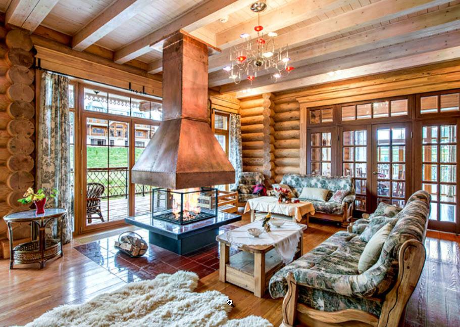 Это в интерьере подходит для деревянного рубленого дома. В этом типе жилья уместно размещать привычные элементы. Никто не запрещает применить его в интерьере деревянного дома, внутри будет выглядеть вполне гармонично.