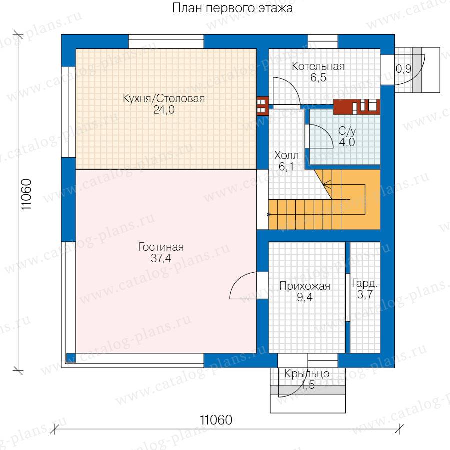 1 этаж – кухня, столовая, гостиная, рабочие и бытовые комнаты;