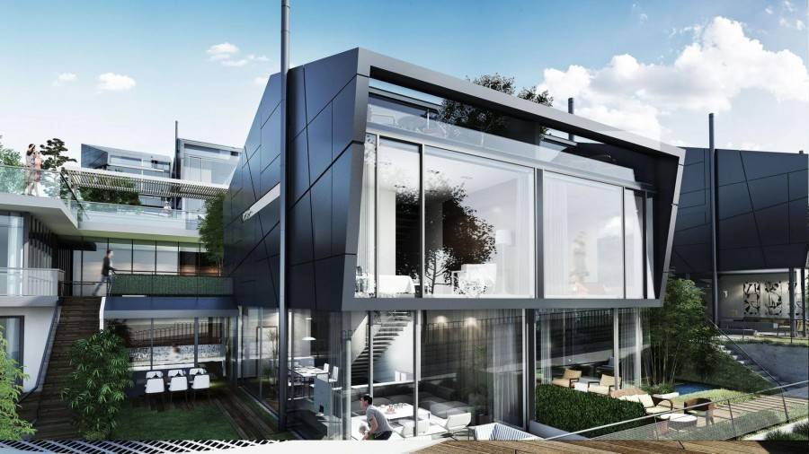 Такой дом сложно спутать с другими, так как он существенно отличается по виду. Это могут быть маленькие дома в виде куба либо просторные особняки в несколько этажей, представляющие собой сложную конструкцию из блоков геометрической формы.
